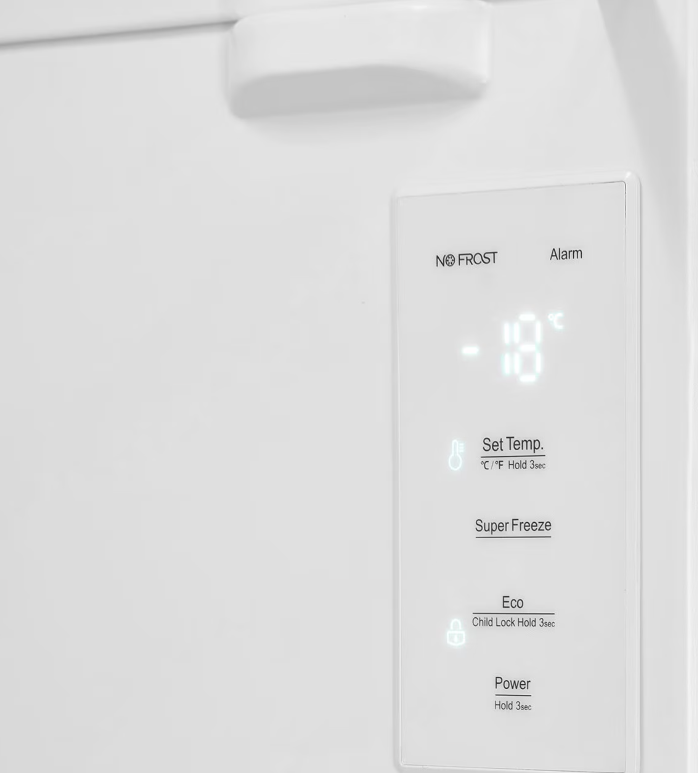 Control electronic cu display in interior Setezi simplu si rapid, printr-o simpla atingere a displayului, temperatura din compartimentul de congelare, cat si modul de functionare dorit. |