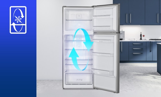 Sistem de racire Full No Frost Datorita sistemului Full No Frost, dezghetarea frigiderului sau a congelatorului sunt de domeniul trecutului. Aerul rece, lipsit de umiditate, circula constant, iar gheata nu se poate forma. Astfel, alimentele raman proaspete mai mult timp |
