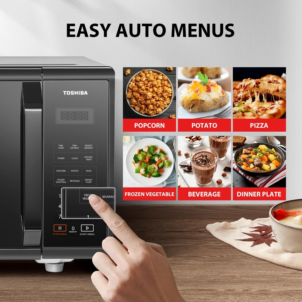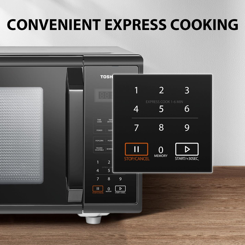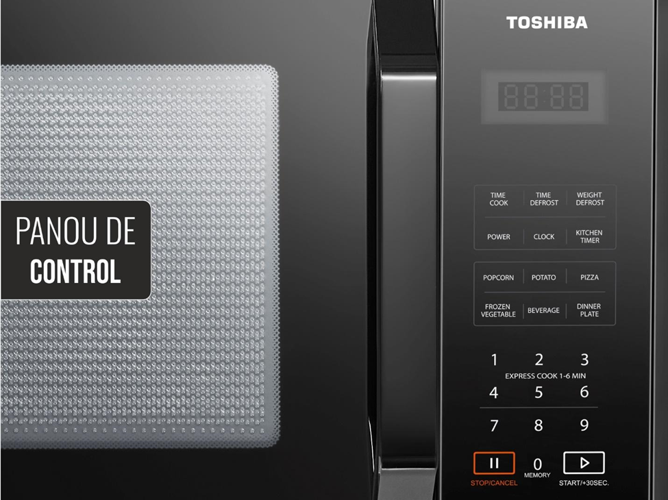 Gama de cuptoare cu microunde Toshiba este proiectata in asa fel incat sa scurteze timpul de gatire fara a compromite performanta si rezultatul final. Cu o putere de 800 W, cuptorul cu microunde decongeleaza si reincalzeste mancarea in cel mai scurt timp.