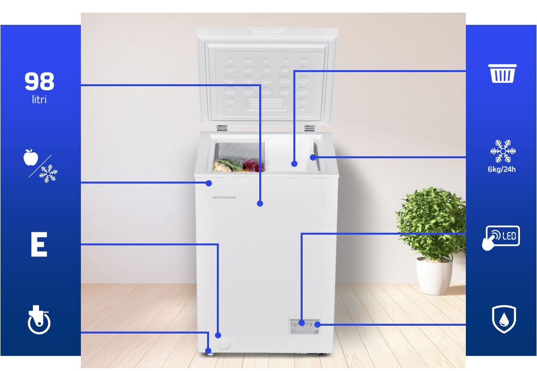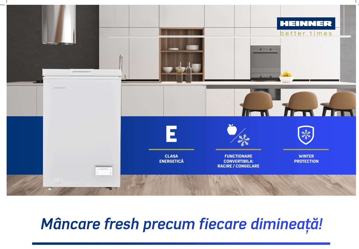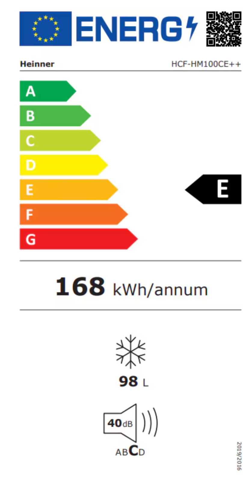 Lada frigorifica Heinner HCF-HM100CE++, 98 l, Clasa E, Convertibila Frigider/Congelator, Control electronic, Alb