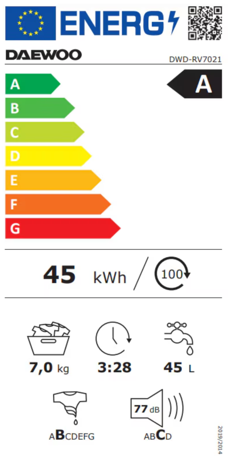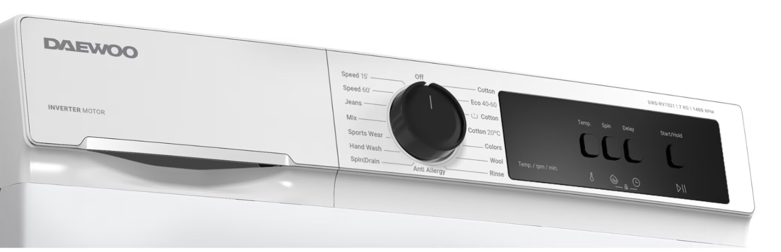 Masina de spalat rufe Daewoo DWD-RV7021, 7 kg, Clasa A, 1400 RPM, Motor inverter, Spalare cu Abur, Alb
