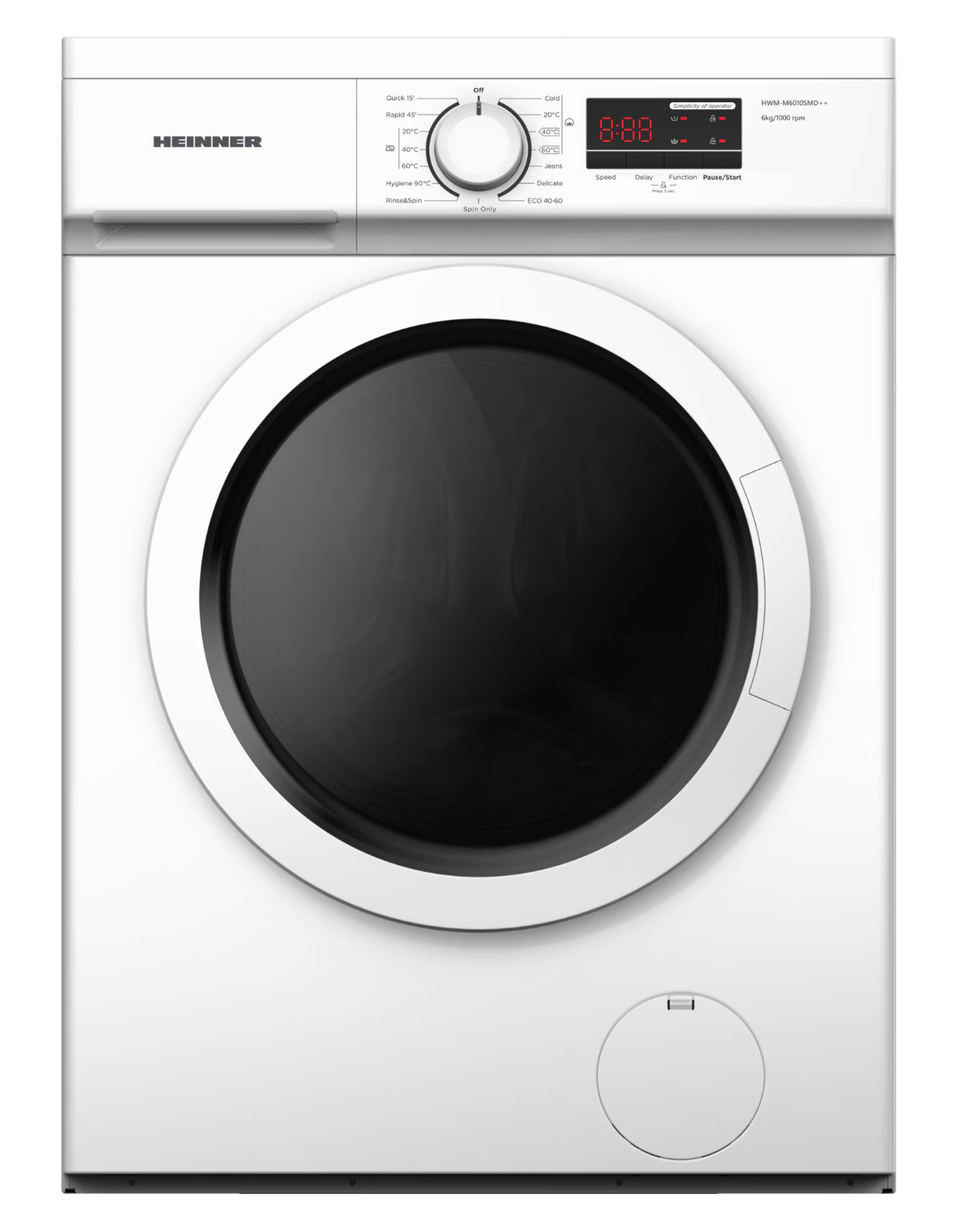 Masina de spalat rufe Slim Heinner HWM-M6010SMD++, 6 kg, 1000 rpm, Clasa D, Dislay digital, Blocare acces copii, Alb