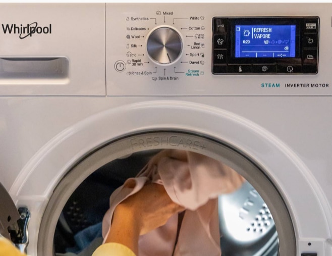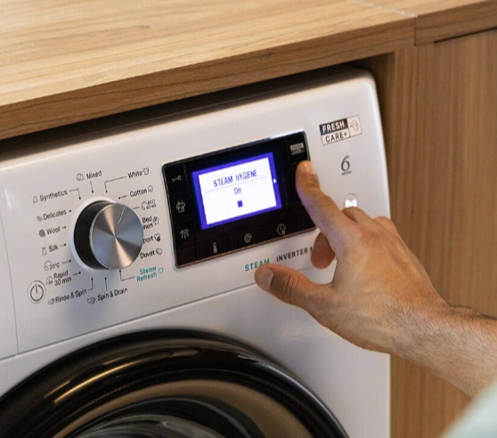 Steam Hygiene Aceasta tehnologie ajuta la eliminarea bacteriilor si protejeaza pielea sensibila. Rufele tale sunt dezinfectate printr-un flux de abur fierbinte, eliberat in timpul ciclului de spalare.