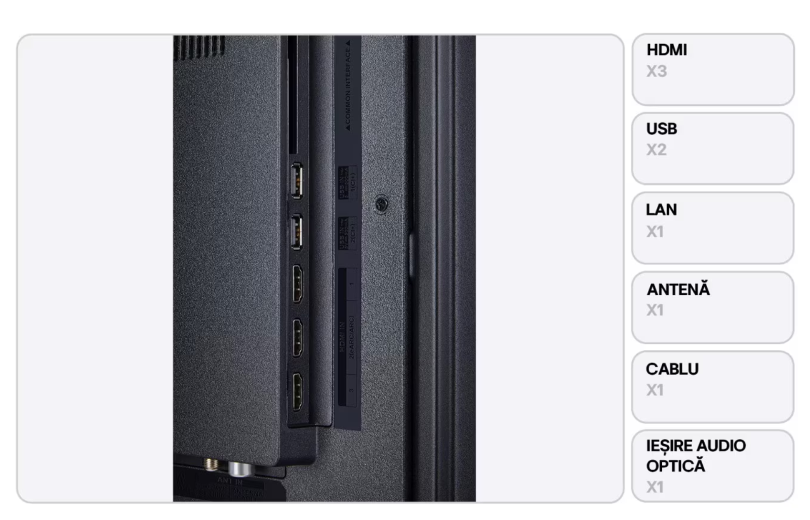 2 x USB 1 x RJ-45 3 x HDMI CI+ slot