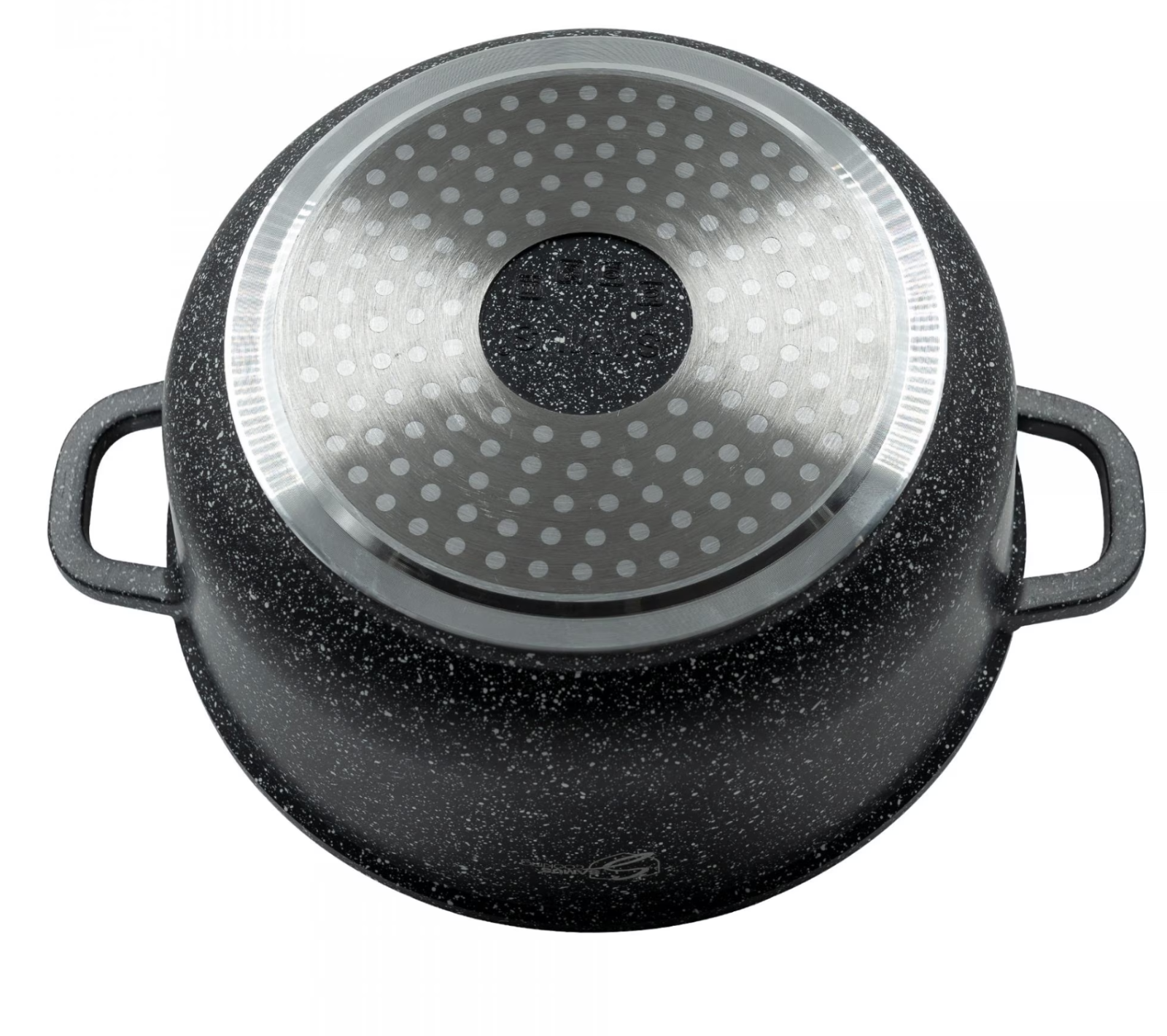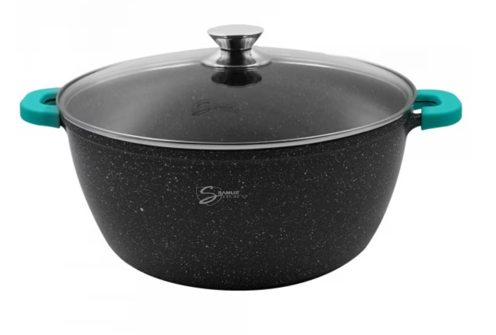 Oala Samus din aluminiu turnat asigura o distributie uniforma a caldurii pe intreaga sa suprafata, facilitand gatirea mancarii mai uniforma si reducand riscul de a arde anumite zone sau de a ramane negatite.